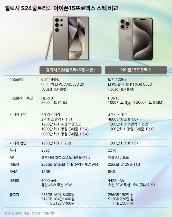갤럭시 S24 vs. 아이폰 15 프로 맥스