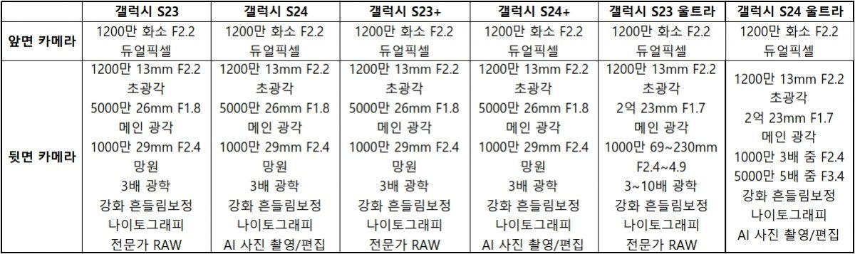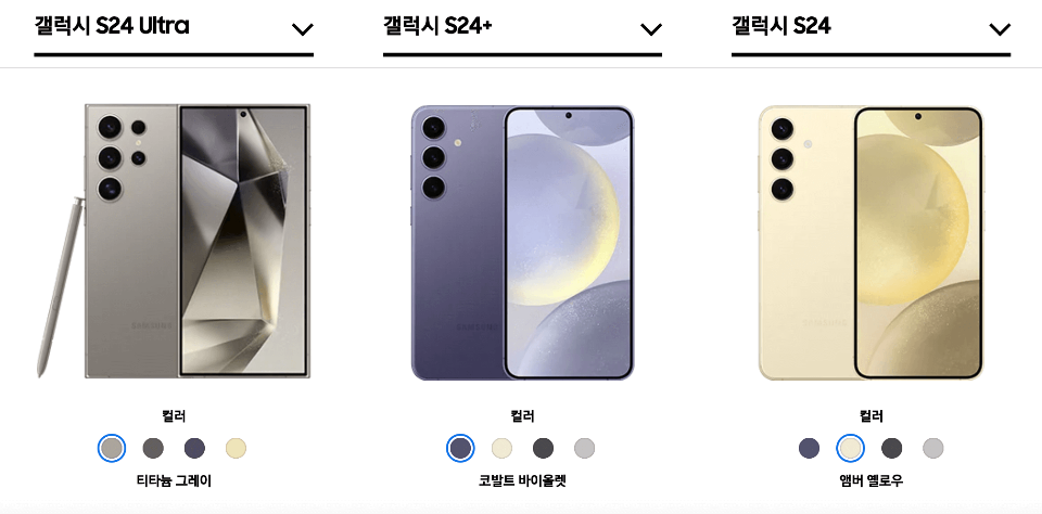 [1] samsung.com - 갤럭시 S24 vs S24+ vs S24 Ultra | Samsung 대한민국 (https://www.samsung.com/sec/smartphones/galaxy-s24-ultra/compare/)